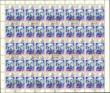| + | {{BD-Satz-Marke |Gebiet=DDR |MiNr=1830 |Bild=ddr1830.2 |Abbildung=Jugendliche, Friedenstaube }} | ||
