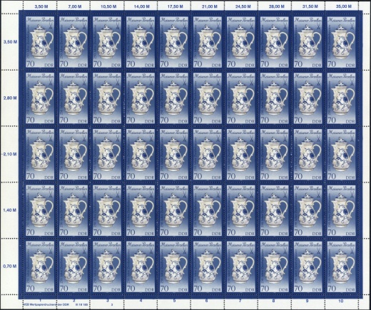 | Ersttag: | 18.4.1989 | Abbildung: | Kaffeekanne (1745) | Zähnung: | I:K12,5:13; II:K14 | Druck: | Odr. | Farbe: | mehrfarbig | Varianten: | I: Größe 25,5mm x 43mm (aus ZD-Bogen) II: Größe 32,5mm x 55mm (aus Schalterbogen) | Auflage: | I: 2.100.000; II: 3.000.000 |