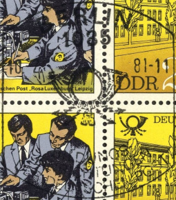 | Ersttag: | 10.2.1981 | Abbildung: | Ingenieurschule "Rosa Luxemburg" der Deutschen Post, Leipzig | Zähnung: | K14 | Druck: | Odr. | Farbe: | mehrfarbig | Auflage: | 8.000.000 |