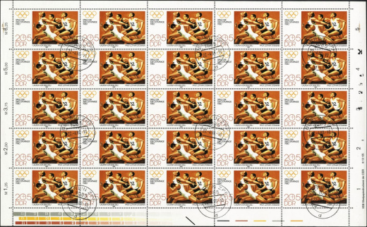 (Zuschlag) | | Ersttag: | 22.4.1980 | | Abbildung: | Läufer vor dem Ziel; Öltempera von Lothar Zitzmann (1924-1977) | | Zähnung: | K14 | | Druck: | RaTdr. | | Farbe: | mehrfarbig | | Auflage: | 3.500.000 |