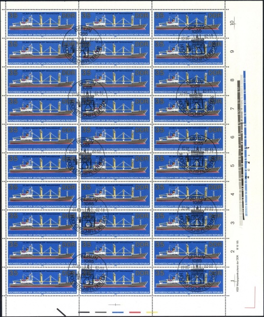 | Ersttag: | 22.6.1982 | Abbildung: | Motorschiff "Berlin - Hauptstadt der DDR" Semicontainerschiff | Zähnung: | K14 | Druck: | RaTdr. | Farbe: | mehrfarbig | Wz: | ohne | Auflage: | 2.100.000 |