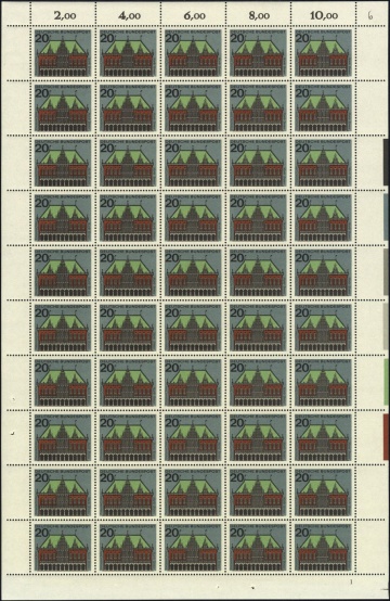 Das Passerkreuz unter Feld 50 ist nur bei sehr breitem unteren Bogenrand zu sehen (>7,5mm unter dem Markenbild).
