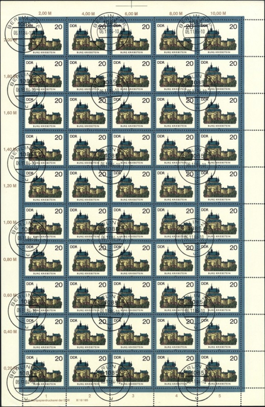 KatNr.: | | 2911 (Michel) | Abbildung: | Burg Kreibstein bei Hainichen (12. Jh.) | Zähnung: | K14 | Druck: | Odr. | Farbe: | mehrfarbig | Wz: | ohne | Auflage: | 8.000.000 |
