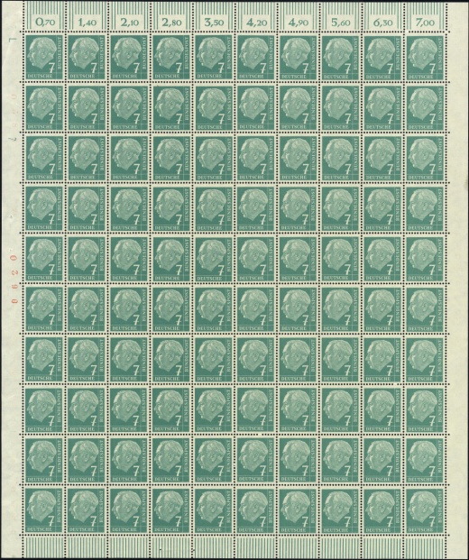• Walzenstriche (WS): Oberer Bogenrand siehe Reihenwertzähler oben. Unterer Bogenrand: