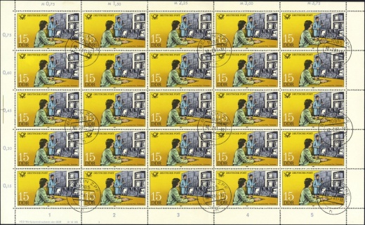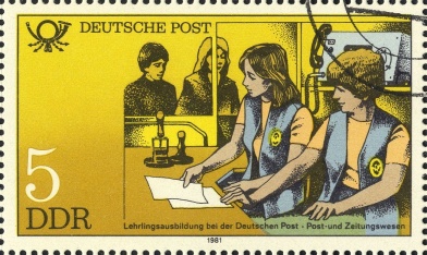| | Ersttag: | 10.2.1981 | | Abbildung: | Lehrlingsausbildung im Fernsprech- und Fernschreibwesen | | Zähnung: | K14 | | Druck: | Odr. | | Farbe: | mehrfarbig | | Wz: | ohne | | Auflage: | 16.000.000 |