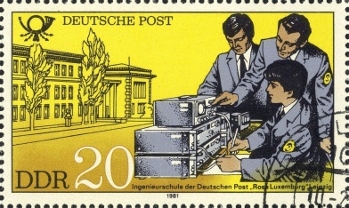 | | Ersttag: | 10.2.1981 | | Abbildung: | Ingenieurschule "Rosa Luxemburg" der Deutschen Post, Leipzig | | Zähnung: | K14 | | Druck: | Odr. | | Farbe: | mehrfarbig | | Wz: | ohne | | Auflage: | 8.000.000 |