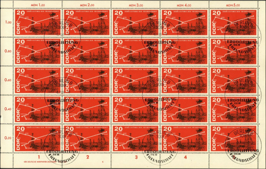 | | Ersttag: | 8.11.1966 | | Abbildung: | Teilansicht der VEB Leuna- Werke, Streckenverlauf der Erdölleitung aus der UdSSR | | Zähnung: | K13,5:13 | | Druck: | Odr. | | Farbe: | lebaftpreußischblau/schwarz | | Wz: | ohne | | Auflage: | 1.400.000 |