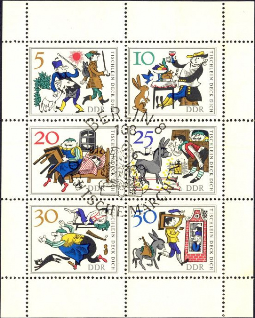 | | Ersttag: | 8.12.1966 | | Abbildung: | Tischlein deck dich | | Zähnung: | K13,5:13 | | Druck: | Odr. | | Farbe: | mehrfarbig | | Wz: | ohne | | Auflage: | 2.000.000 |
