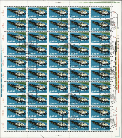 | | Ersttag: | 20.10.1981 | | Abbildung: | Dieselelekrisches Seitenrad- Fahrgastschiff (1961-1964) | | Zähnung: | K14 | | Druck: | RaTdr. | | Farbe: | mehrfarbig | | Auflage: | 3.500.000 |