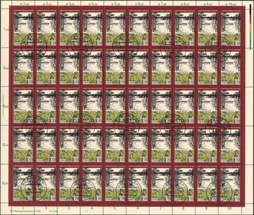 | Ersttag: | 9.6.1981 | Abbildung: | Wiesenburg | Zähnung: | K12½:13 | Druck: | Odr. | Farbe: | mehrfarbig | Auflage: | 4.500.000 |