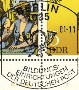 | Ersttag: | 10.2.1981 | Abbildung: | Lehrlingsausbildung im Fernsprech- und Fernschreibwesen | Zähnung: | K14 | Druck: | Odr. | Farbe: | mehrfarbig | Auflage: | 16.000.000 |