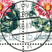 | | Ersttag: | 21.6.1983 | | Abbildung: | Peruanische Zwergkaktus | | Zähnung: | K14 | | Druck: | RaTdr. | | Farbe: | mehrfarbig | | Auflage: | 3.500.000 |