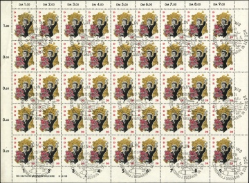 Rechte 0 von RWZ DM 1.00 unten abgeflacht. D von RWZ DM 2.50 unten rechts eingedellt. Fleck zwischen Dezimalpunkt und 5 von RWZ DM 5.00 sowie 5 unten eingedellt.
