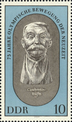 | | Ersttag: | 20.6.1969 | | Abbildung: | Coubertin-Stele im Hain von Olympia (Griechenland) | | Zähnung: | K14 | | Druck: | RaTdr./StTdr. | | Farbe: | violettschwarz/hellkarminrot | | Wz: | ohne | | Auflage: | 1.700.000 |