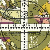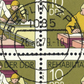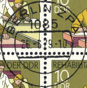 | Nummer: | | SE-11 | | Typ: | Ersttagssonderstempel (ESST) | | Ort/PA: | BERLIN 1085 | | Inschrift: | REHABILITATION IN DER DDR | | Abbildung: | Symbol mit Rollstuhlfahrer | | Datum: | 26.-6.79-11 | | Größe: | 39,8mm |