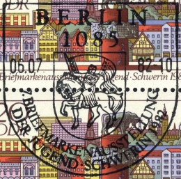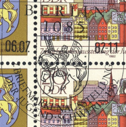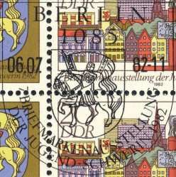 KatNr.: | | 2722Zf | Abbildung: | Wappen der Stadt Schwerin. Inschrift: "7. Briefmarkenausstellung der Jugend, Schwerin 1982" | Zähnung: | K13:12½ | Druck: | Odr. | Farbe: | mehrfarbig | Auflage: | 3.500.000 |