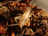 Abends: Das zweite Heimchen hat das Zeitliche gesegnet und liegt als ausgesaugte Hülle auf dem Terrariumboden. Na also... geht doch... Hab' auch gleich für Nachschub gesorgt.... und das Wassergel ausgetauscht... und den Boden und die Pflanzen befeuchtet... und die anderen Heimchen mit frischer Gurke versorgt... Puhhh... da kommt man ja ins schwitzen ;) |