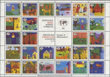 Oben: KURATORIUM TUBERKULOSE IN DER WELT E.V., 1987, WEIHNACHTSSIEGELMARKENSAMMLUNG