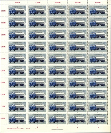 | | + | {{BD-Satz-Marke |Gebiet=DDR |MiNr=2749 |Bild=ddr2749.1 |Abbildung=Milchtank-Sattelzug W 50 }} |