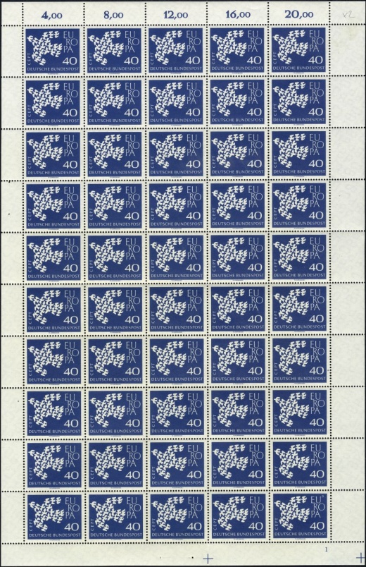 |Abbildung=19 Tauben, angeordnet als fliegende Taube |Nominale=10Pf |Ersttag=18.9.1961 | |Abbildung=19 Tauben, angeordnet als fliegende Taube |Nominale=10Pf |Ersttag=18.9.1961 | ||