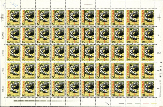 | | Ersttag: | 27.5.1980 | | Abbildung: | Gewerkschaftsschule, Bernau (1928 bis 1930); Architekt: Hannes Meyer (1889-1954) | | Zähnung: | K14 | | Druck: | RaTdr. | | Farbe: | mehrfarbig | | Auflage: | 3.500.000 |