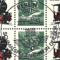 | - | + | {{BD-Header |Gebiet=DDR |MiNr=2562/2564 |Bild=ddr2562.2js |BgKatNr=2562-2 {{Symbol|ges}} SE-11 (ESST) St 0/1 |QuelleTyp=B |QuelleName=Joachim Smejkal }} | |