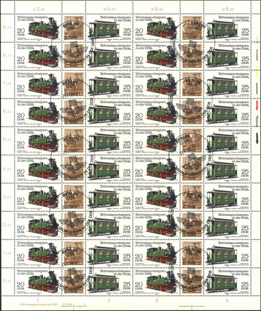 | KatNr.: | | 2563Zf (Michel) | | Abbildung: | Streckenplan und Fahrt durch Bad Doberan(?) | | Zähnung: | K13:12,5 | | Druck: | Odr. | | Farbe: | mehrfarbig | | Wz: | ohne | | Auflage: | 3.500.000 |