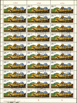 | | Ersttag: | 12.7.1977 | | Abbildung: | Hochdrucksammelpresse K 453 | | Zähnung: | K13:12½ | | Druck: | Odr. | | Farbe: | mehrfarbig | | Auflage: | 4.500.000 |