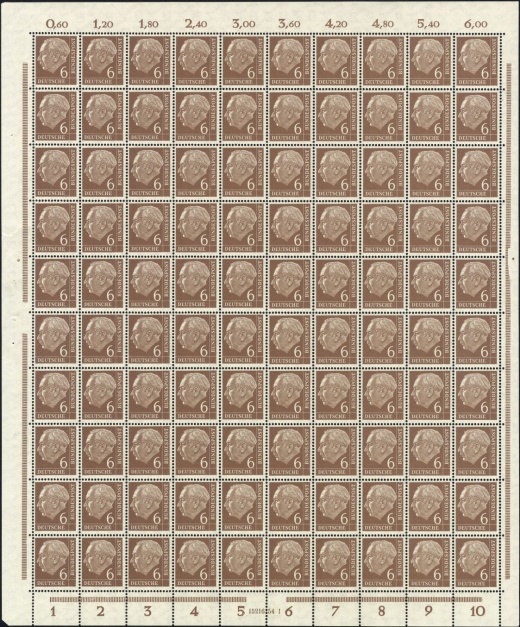Bogen MiNr. 180xWv (HAN 15365.53 2, DZ Gr)
