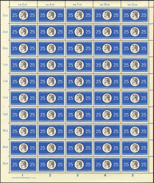 • Passerkreuz (PK): Als senkr. schwarzer Strich im unteren Bogenrand unter Feld 47/48 (U3b). Abstand zum Markenbild: 12,15mm.