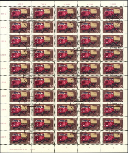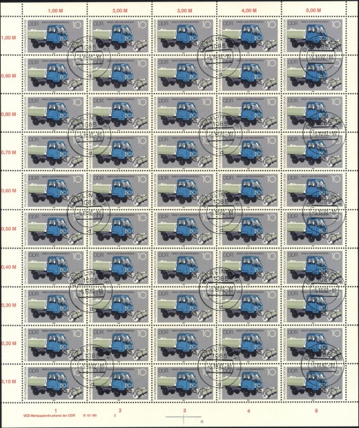 | | Ersttag: | 5.10.1982 | | Abbildung: | Pritschenfahr- zeug W 50 | | Zähnung: | K13:12,5 | | Druck: | Odr. | | Farbe: | mehrfarbig | | Wz: | ohne | | Auflage: | 5.000.000 |