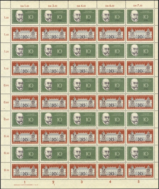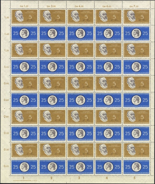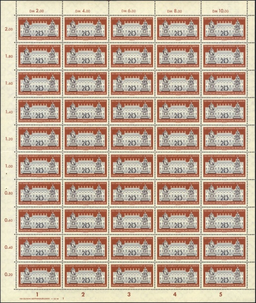 | | Ersttag: | 4.11.1960 | | Abbildung: | Vorderseite der Festplakette (Kopfbilder der Brüder Wilhelm und Alexander von Humboldt) | | Zähnung: | K13:12,5 | | Druck: | Odr. | | Farbe: | cyanblau/braunschwarz | | Wz: | 3Y | | Auflage: | 11.000.000 |