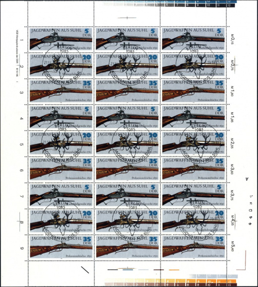 | | Ersttag: | 21.11.1978 | | Abbildung: | Schnapphahngewehr (1780) | | Zähnung: | K14 | | Druck: | Odr. | | Farbe: | mehrfarbig | | Wz: | ohne | | Auflage: | 3.060.000 |