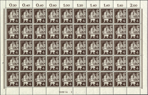 • Zähnungspunktur (ZP): Im linken Bogenrand zwischen Feld 21/31 und im rechten Bogenrand zwischen Feld 30/40.