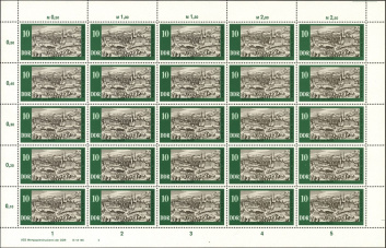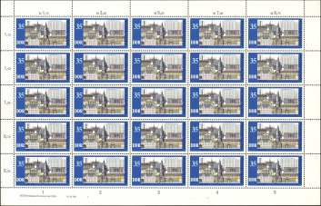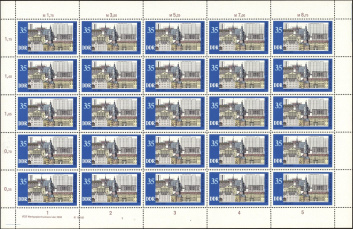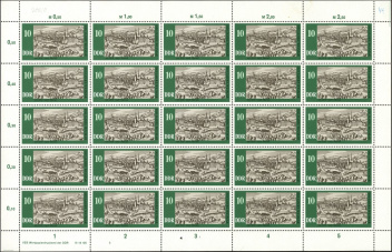 | | Ersttag: | 23.9.1975 | | Abbildung: | Historische und moderne Gebäude in Weimar | | Zähnung: | K13½:13 | | Druck: | Odr. | | Farbe: | mehrfarbig | | Auflage: | 2.000.000 |