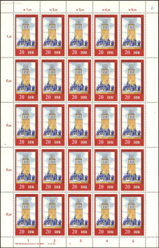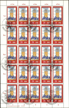 | | Ersttag: | 23.9.1975 | | Abbildung: | Denkmal in der Mahn- und Gedenkstätte Buchenwald bei Weimar | | Zähnung: | K13:13½ | | Druck: | Odr. | | Farbe: | mehrfarbig | | Auflage: | 7.000.000 |