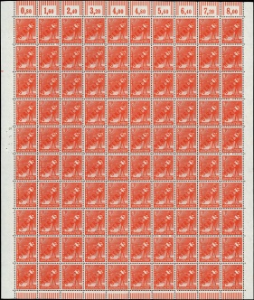 - Walzenstriche (WS): Oberer Bogenrand siehe Reihenwertzähler oben. Unterer Bogenrand: