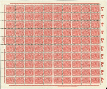 - Zähnungspunktur (ZP): Im oberen Bogenrand über Feld 7 und im unteren Bogenrand unter Feld 97.