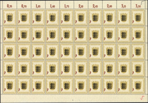 | | Ersttag: | 15.6.1955 | | Abbildung: | Wappen von Baden-Württemberg | | Zähnung: | K13:13,25 | | Druck: | Odr. | | Farbe: | mehrfarbig | | Wz: | 4Vc