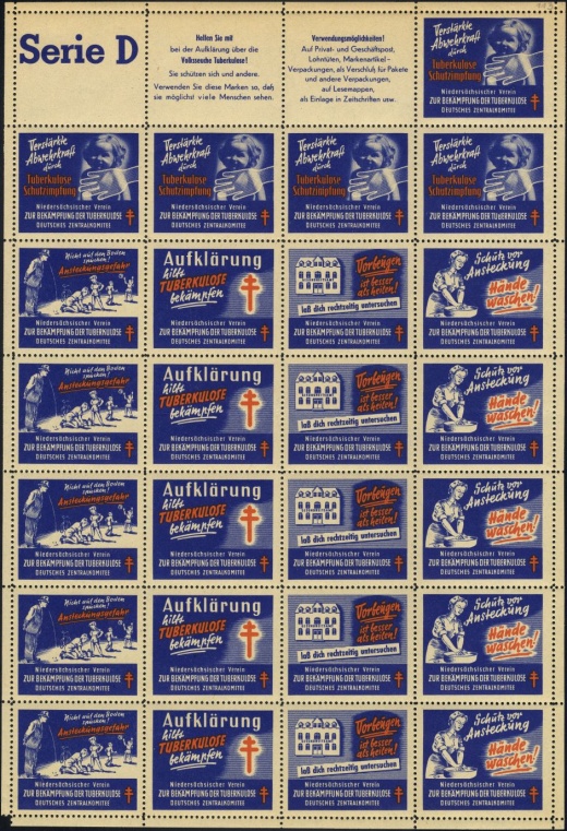 Alle Marken tragen zusätzlich folgende Inschriften: Unten: Niedersächsischer Verein ZUR BEKÄMPFUNG DER TUBERKULOSE, DEUTSCHES ZENTRALKOMITEE
