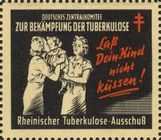 | KatNr.:  |   | DE-1951-12 (Erler: -, Green: 48.2) |  | Abbildung:   |  Zwei Frauen mit Kind |  | Schriftzug:  |  "Laß Dein Kind nicht Küssen!". |  | Zähnung:     |  L10,5 |  | Druck:       |  Odr. |  | Farben:      |  schwarz, rot |  | Bogen:       |  DE-1951-Bg3 |  | Felder:      |  1, 5, 9, 13 und 17 |