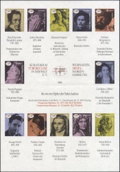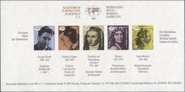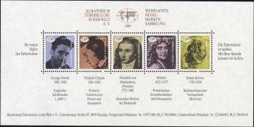 Der Bogen besteht aus 12x2 Marken mit Abbildungen Daten von Persönlichkeiten die an der Tuberkulose verstorben sind und 6 Zierfeldern auf den Feldern 12-14 und 17-19.