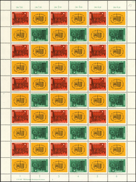 | | Ersttag: | 26.2.1964 | | Abbildung: | Bräunigkes Hof (um 1700) | | Zähnung: | K13:13,5 | | Druck: | Odr. | | Farbe: | lebhaftrot/schwarz | | Wz: | 3X (DDR Kreuzblüten)