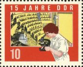 Block 19 Studentin mit Mikroskop, Hörsaal |