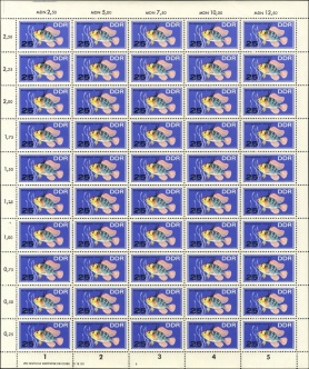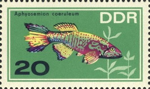 | | Ersttag: | 8.11.1966 | | Abbildung: | Blauer Pracht- kärpfling | | Zähnung: | K13:12,5 | | Druck: | Odr. | | Farbe: | mehrfarbig | | Auflage: | 7.000.000 |