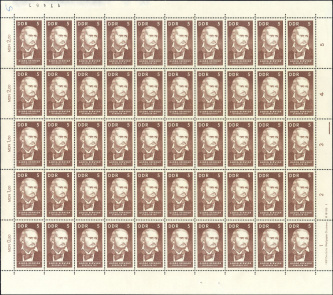| Ersttag: | 27.9.1967 | Abbildung: | Theodor Storm (1817-1888) | Zähnung: | K14 | Druck: | StTdr. | Farbe: | schwärzlichblaugrün | Wz: | ohne | Auflage: | 1.500.000 |