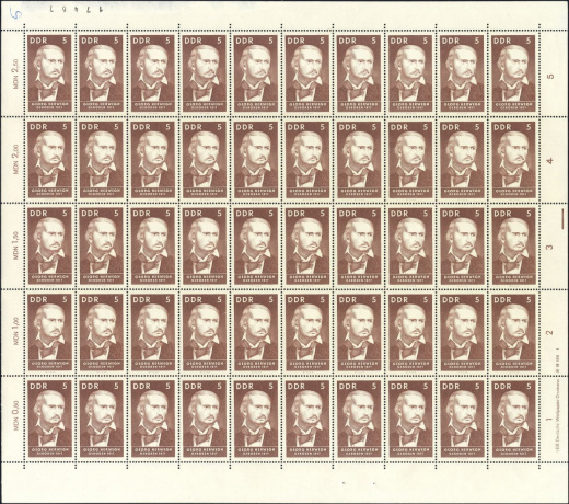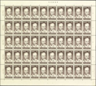| Ersttag: | 27.9.1967 | Abbildung: | Johann Joachim Winkelmann (1717-1768) | Zähnung: | K14 | Druck: | StTdr. | Farbe: | dunkelbraun | Wz: | ohne | Auflage: | 5.000.000 |