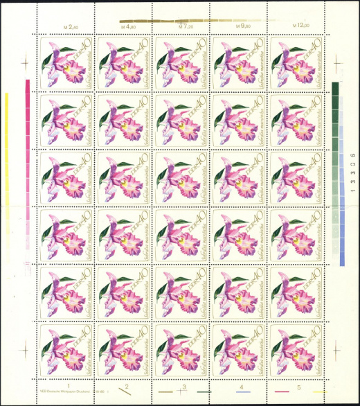 | | Ersttag: | 12.11.1968 | | Abbildung: | Paphiopedilum albertianum | | Zähnung: | K13 | | Druck: | RaTdr. | | Farbe: | mehrfarbig | | Auflage: | 12.000.000 |