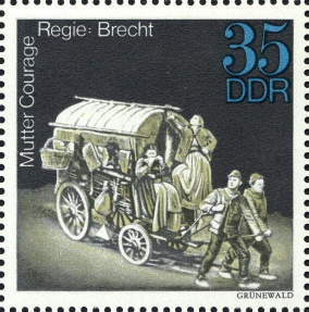 | | Ersttag: | 29.5.1973 | | Abbildung: | Mutter Courage, Regie: Brecht | | Zähnung: | K13 | | Druck: | RaTdr. | | Farbe: | mehrfarbig | | Auflage: | 1.900.000 |
