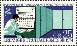 | | Ersttag: | 5.3.1974 | | Abbildung: | Datenverarbeitungsanlage ROBOTRON EC 2040 (Zentraleinheit) | | Zähnung: | K14 | | Druck: | RaTdr. | | Farbe: | mehrfarbig | | Wz: | ohne | | Auflage: | 5.000.000 |